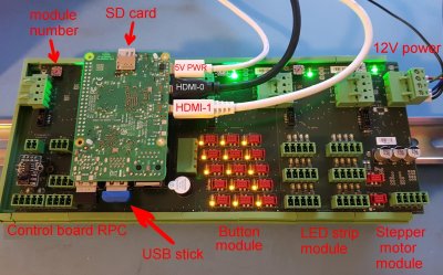 Met aansluitingen voor 4k HDMI beeldschermen en stereo audio, drukknoppen, LED-strips en stappenmotoren, allemaal volledig programmeerbaar.